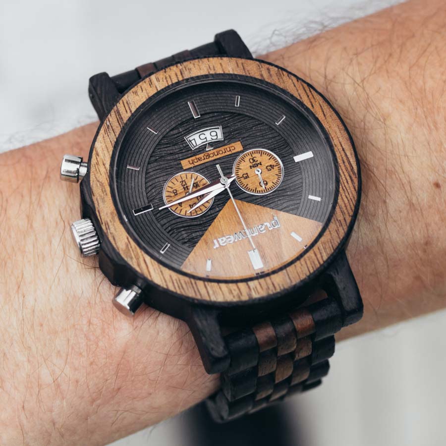 Choć nasze drewniane produkty mają z założenia charakter unisex, możemy bez problemu wskazać Ci te z nich, które najczęściej wybierają mężczyźni. Jeśli więc zastanawiasz się, które polskie zegarki drewniane można uznać za zegarki męskie, śpieszymy z podpowiedzią. Panowie najczęściej wybierają u nas modele: Raw Palisander (głównie na skórzanym pasku), Select Chronograph (nasz najbardziej zaawansowany technicznie i największy model) oraz Fusion Dusk (zegarek łączący drewno i metal – przykład klasycznej elegancji). Dlatego możemy stwierdzić, że zakup każdego z tych modeli będzie trafiony – zarówno jeśli szukasz zegarka dla siebie, jak i na prezent. Zastanawiasz się, czy wypada dać zegarek na prezent? Odpowiedź znajdziesz na naszym blogu – klik!