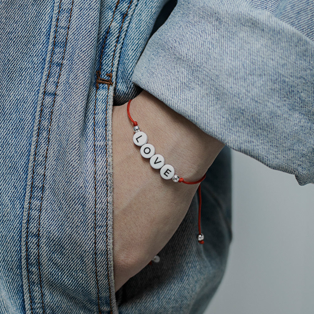 Oryginalne zawieszki z naturalnego materiału i żywicy, z dodatkiem srebrnych elementów. A to wszystko na jubilerskim sznurku. Taka jest nasza bransoletka Love.