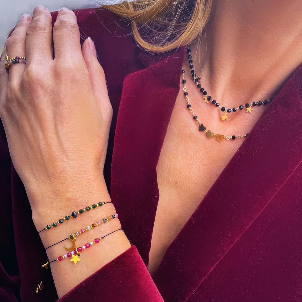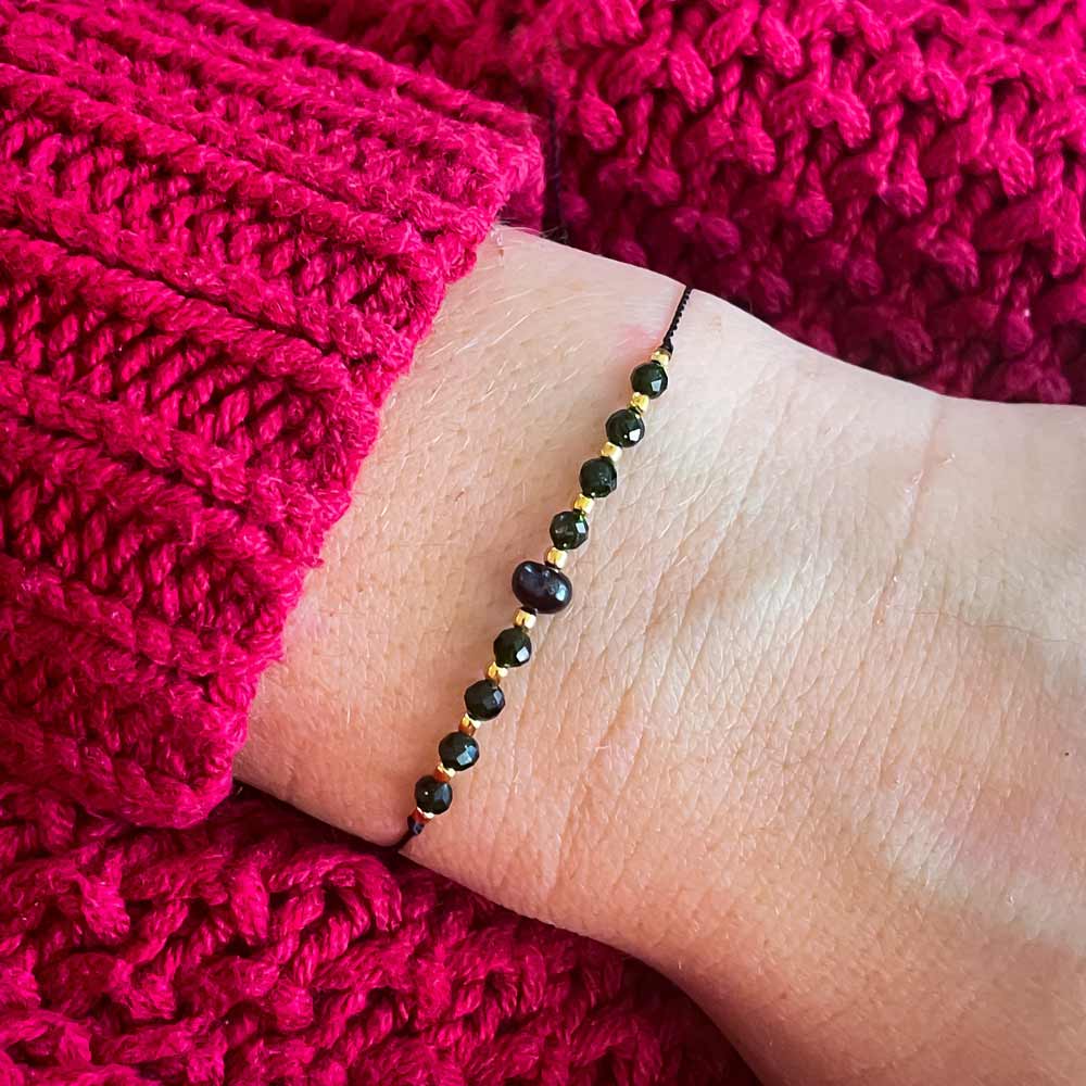 Jeśli na co dzień wybierasz bardziej minimalistyczne dodatki to bransoletka Moments – Maya – Black Pearl jest właśnie dla Ciebie! Do jej stworzenia wykorzystaliśmy szmaragd w odcieniu ciemnej zieleni, który z pewnością doda wyjątkowego charakteru każdej stylizacji i sprawi, że nie jedna koleżanka pozazdrości Ci tego zakupu.