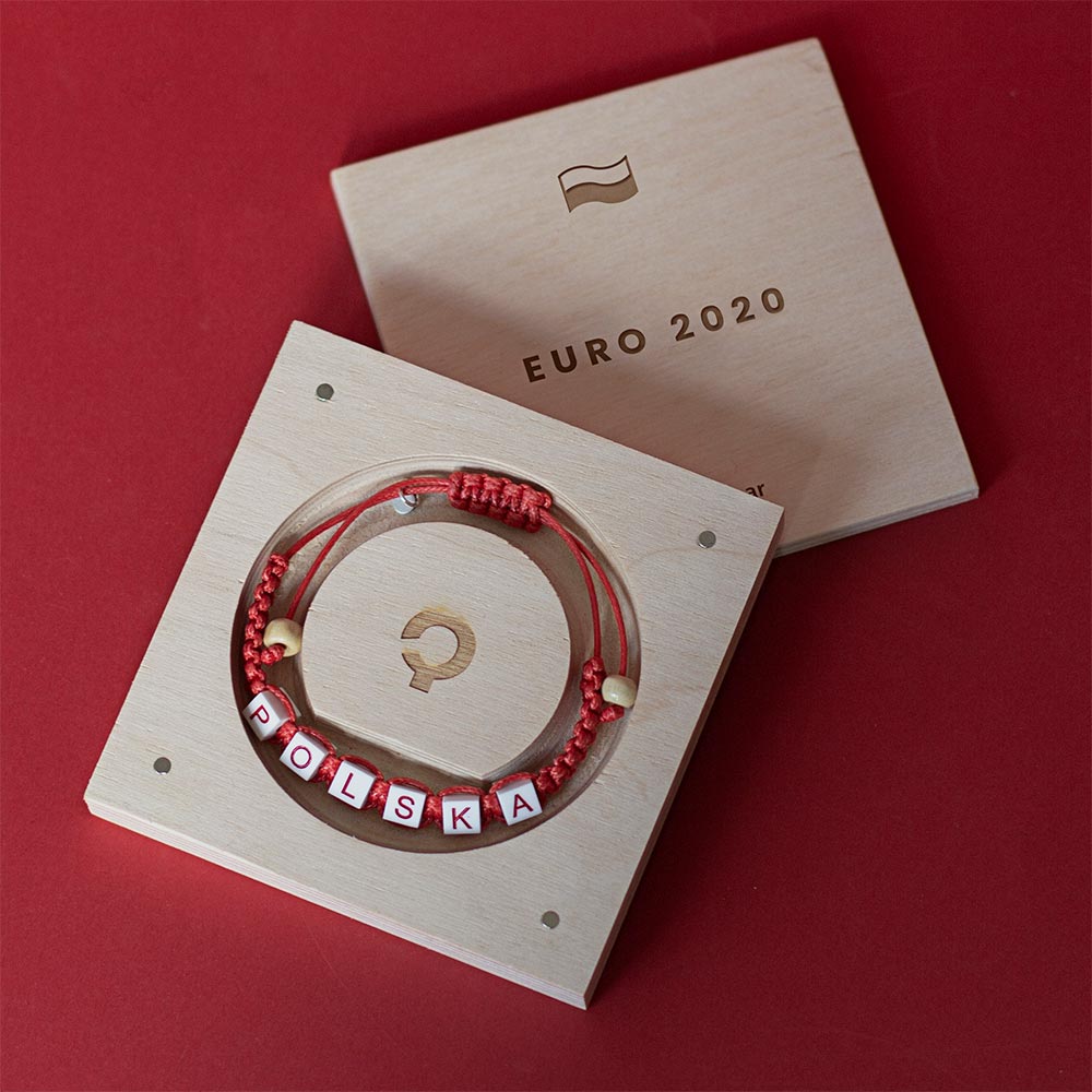 Zestaw kibica Euro 2020 – Mistrzowie zawiera wyjątkową biało-czerwoną bransoletkę z minerałów – Polska oraz kufel kibica z grawerem od Giftbay.