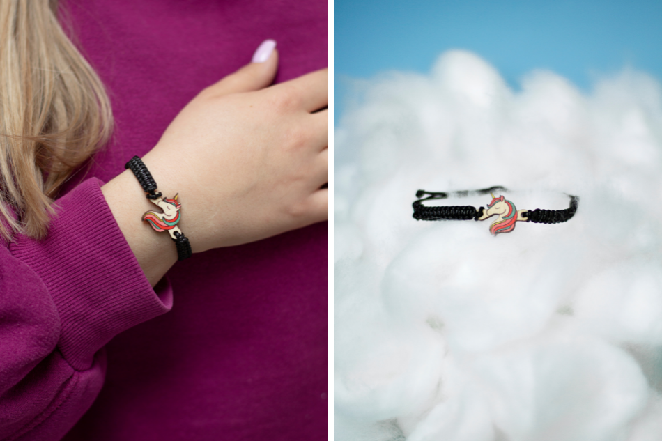 Jednorożec to fantastyczne stworzenie występujące w mitach i legendach. Przenieśliśmy je na naszą plecioną bransoletkę, aby dodać nieco magii i szczyptę uśmiechu do życia! Bransoletka pleciona jednorożec pozwoli znów obdarowanemu poczuć w sobie cząstkę dziecka. Przecież każdy z nas ją w sobie ma, prawda? 😉